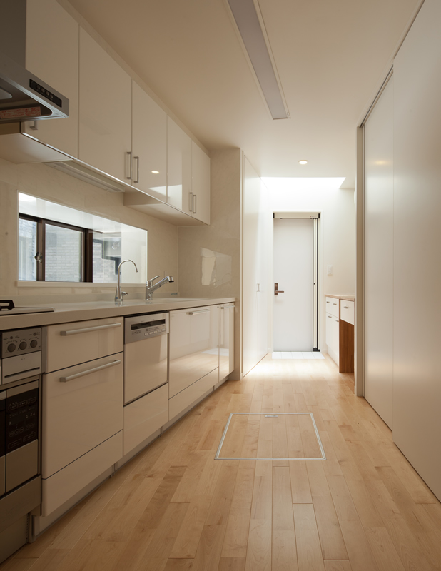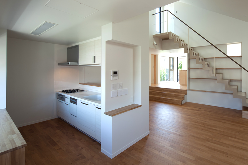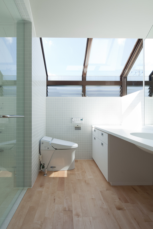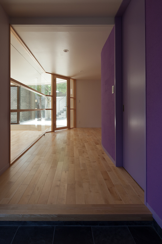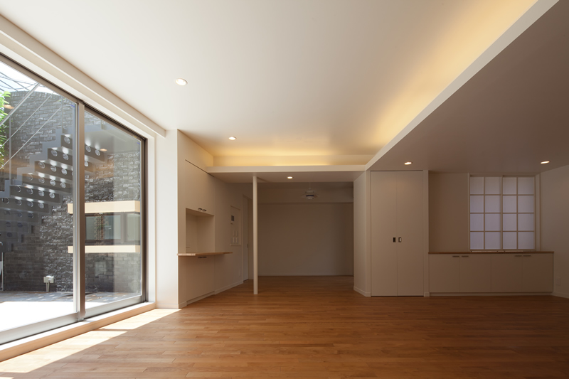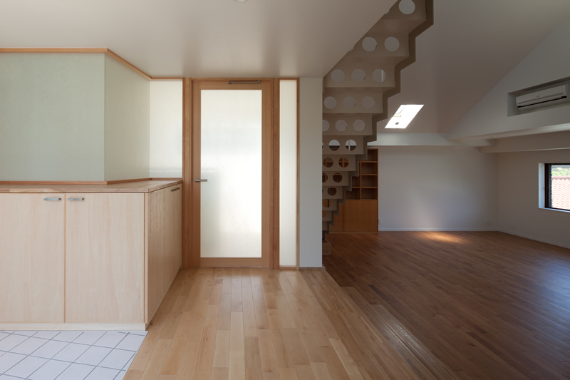玄関、水周りをすべて別にした完全分離タイプの二世帯住宅です。鉄筋コンクリートの躯体はほどんど壊さずに二世帯住宅へリフォームしました。 1階、2階ともにリビングには全面に大きな窓を設置し、明るい空間です。1階には和室に設えてあった障子を残し和モダンな寝室へと造り替えました。 親世帯、子世帯のプライバシーは確保しつつも、いつでも行き来ができるように内階段と外階段を設置しました。